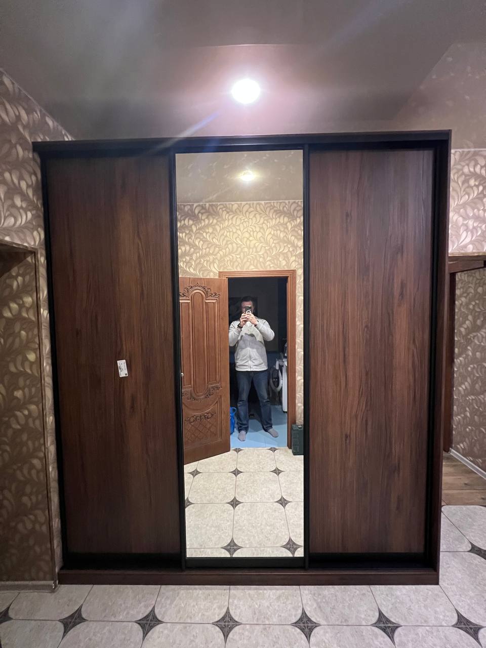 Прихожая Шкаф-купе Тёмно-коричневый орех зеркало прихожая: детали и особенности