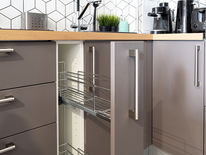 Зависит от размера, материала фасадов и комплектации. Прямые — от 120 000 ₽, угловые — от 180 000 ₽. Точную стоимость считаем бесплатно после замера или по вашим размерам.