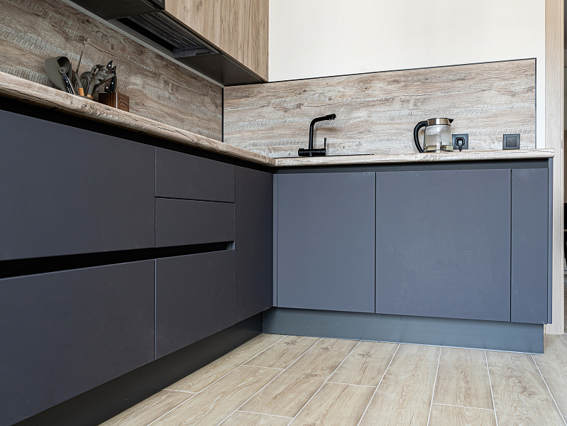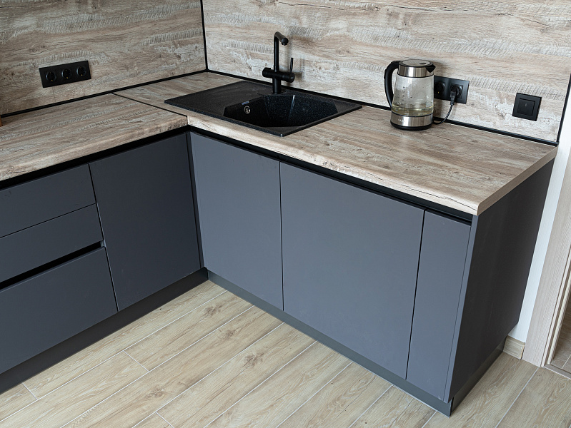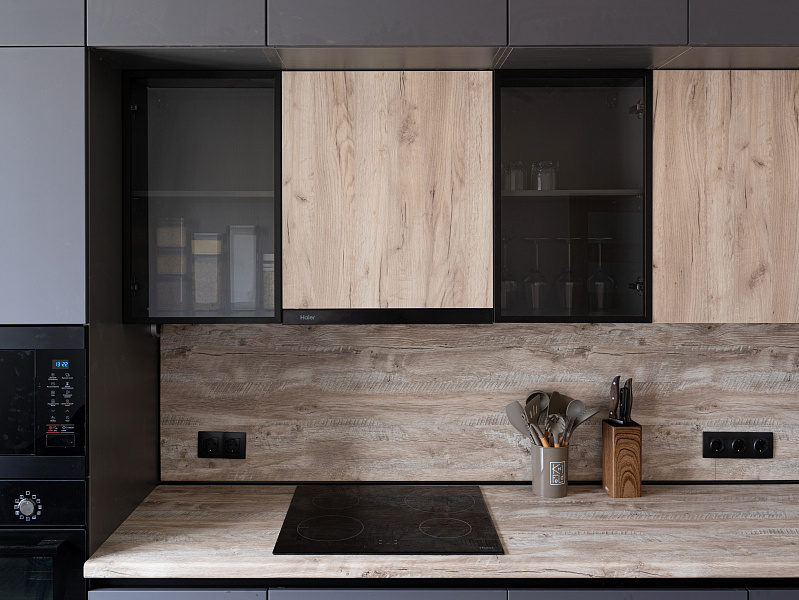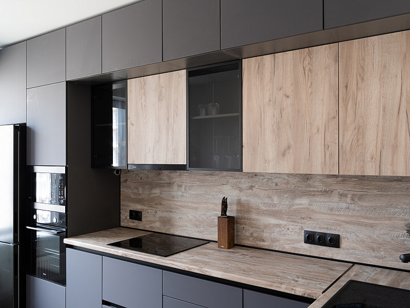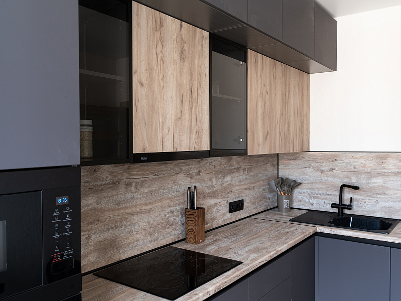 Кухня угловая лофт — Графит и дуб: детали и особенности