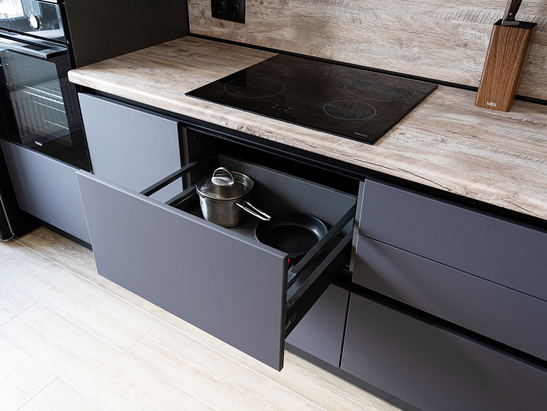 Зависит от размера, материала фасадов и комплектации. Прямые — от 120 000 ₽, угловые — от 180 000 ₽. Точную стоимость считаем бесплатно после замера или по вашим размерам.